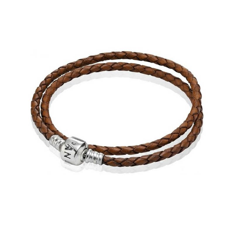 Pulsera de Pandöra en Cuero Rojo Trenzado Simple con Cierre Pandöra en Plata de Ley
